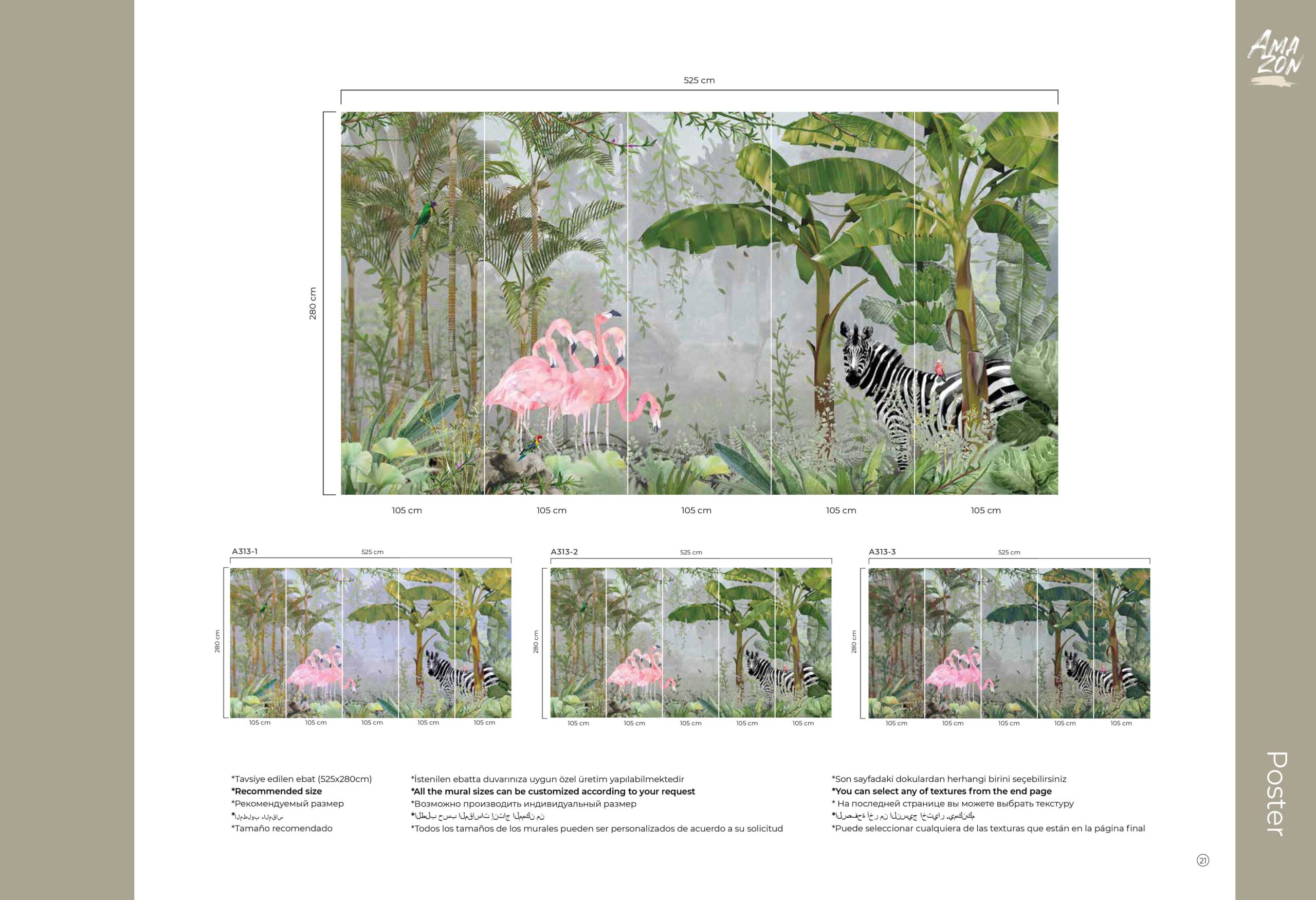 AdaWall obećava izgubljeni raj i daleka putovanja u svom pažljivo dizajniranom i obojenom katalogu Amazon. Pejzaži u našem Amazon katalogu postera vode nas u srce šume sa bujnom vegetacijom, a u isto vreme spajaju slast zaboravljenog sna sa nijansama zelene prirode. Ova posebna kolekcija transformiše Vaš enterijer u osvežavajuću šumu sa velikim ručno crtanim slikama biljaka i životinja, ispunjavajući Vaš dom divnim mirisom šume.