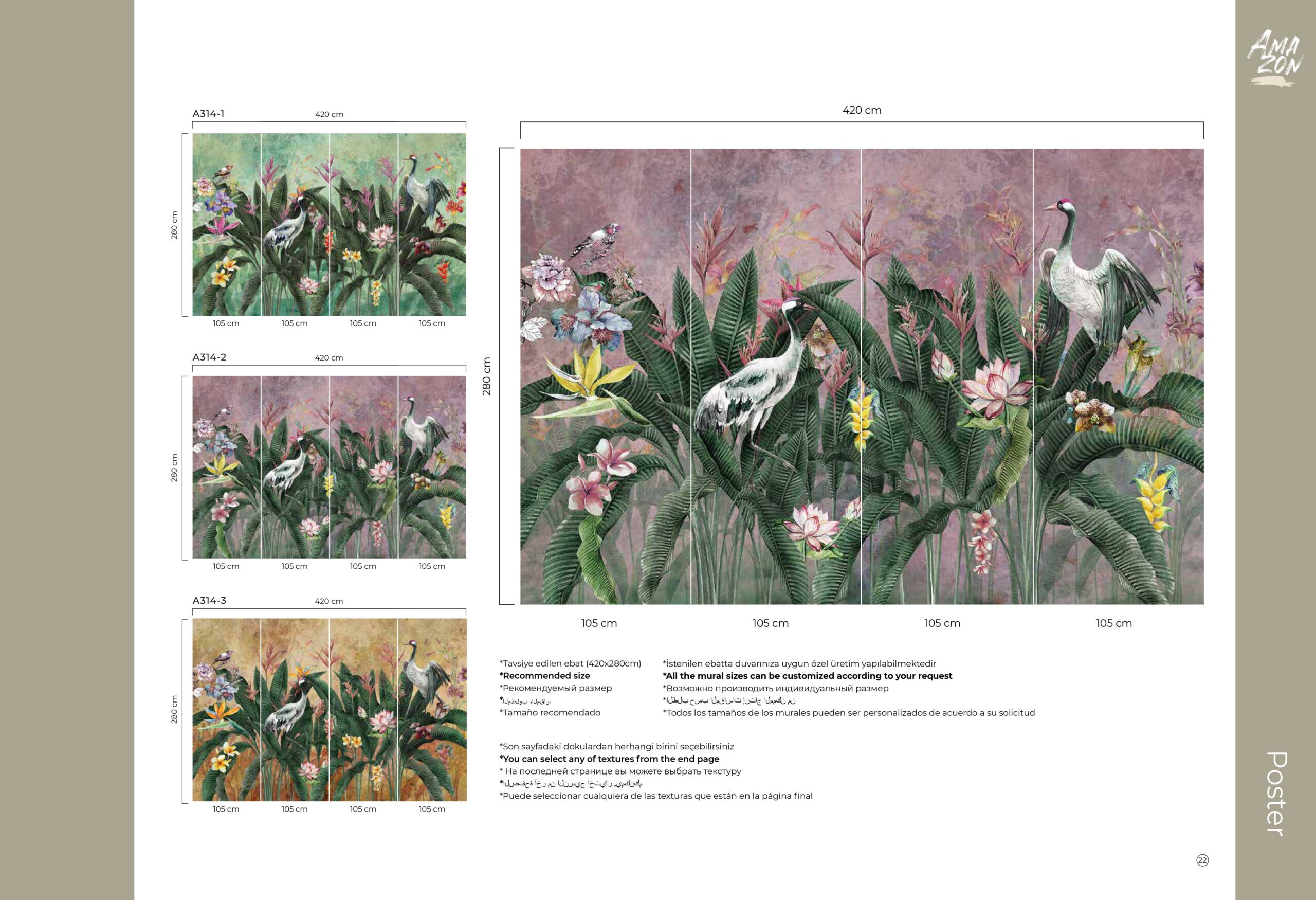 AdaWall obećava izgubljeni raj i daleka putovanja u svom pažljivo dizajniranom i obojenom katalogu Amazon. Pejzaži u našem Amazon katalogu postera vode nas u srce šume sa bujnom vegetacijom, a u isto vreme spajaju slast zaboravljenog sna sa nijansama zelene prirode. Ova posebna kolekcija transformiše Vaš enterijer u osvežavajuću šumu sa velikim ručno crtanim slikama biljaka i životinja, ispunjavajući Vaš dom divnim mirisom šume.